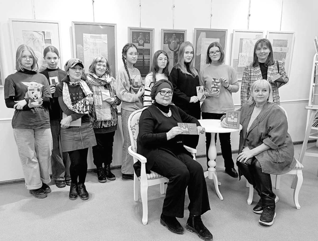 За два часа юные художники, ученицы художественной школы имени Митинского, познакомились с техникой инкрустации по драпу и, несмотря на всю кропотливость процесса, успешно воплотили свои композиции в небольшом формате.