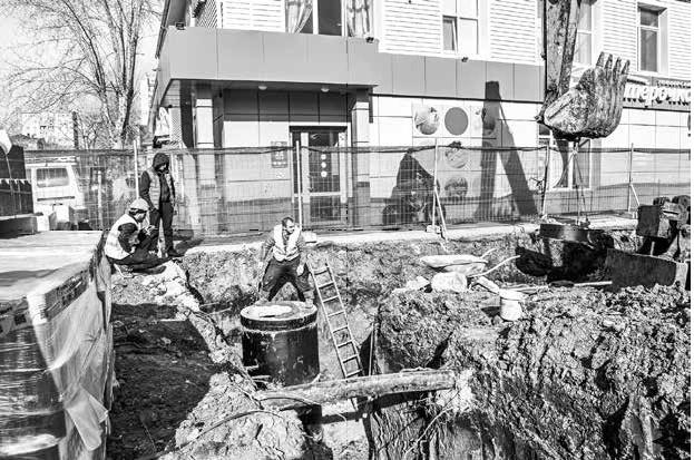 В будущем сквере Отрядов мэра на улице Мельничной укладывают ливневку. Рабочие компании «Тюменьстройрегион» роют для нее канавы. Им помогают три…