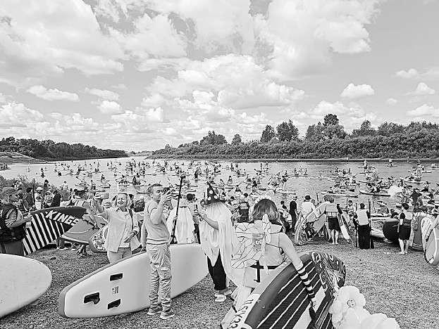 Несколько напутственных слов были сказаны Eленой Познахаревой, главным редактором портала 72.ru, выступившим одним из главных организаторов фестиваля, после чего начался обратный отсчет, а после прозвучали заветные два слова: «Поплыли, поехали», и 680 участников устремились к реке. Друг за другом уходили по воде яркие лодочки, заполонившие собой все видимое пространство. Невозможно описать словами, как это было, ну будто бы цветной или ягодный дождь, падающий с неба. Восторг, перемешанный с желанием оказаться там, среди участников. И оказалось, что отсутствие сапа не было причиной не участвовать: его легко можно было взять напрокат, чем многие и воспользовались. Стоимость удовольствия была всего лишь полторы тысячи рублей, при этом тебе предоставляли уже готовый сап, а по прибытию забирали, и никаких хлопот.