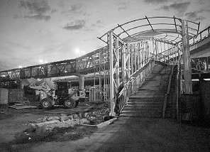 Пешеходный переход у путепровода «Стрела»» долгое время стоял без обшивки, и вот его начали покрывать пластиком. Напомню, «Тюменьгормост» затеял капитальный…