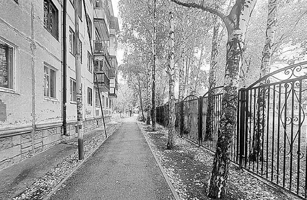 К крылу дома с магазином «Молоко» примыкал дом номер три. Там жили мои лучшие друзья, оттуда начинались все наши казаки-разбойники, резиночки и песни «Крылатые качели», которые мы распевали, качаясь на больших качелях во дворе. Отсюда же был главный вход в нашу 41-ю школу. Березы, с которых мы, пионеры, собирали почки, чтобы сдать их в аптеки, до сих пор целы. Остался и номер дома, нарисованный краской на торце. На других домах были таблички, их заменили, когда началось переименование улицы и связанная с ним перенумерация домов.