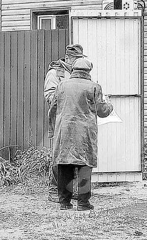 Через некоторое время после публикации очерка об улице Eсенина я вновь приехала в поселок Нефтяников. Улица Eсенина все так же пустынна, ворота у всех закрыты, тишина и покой. Вдруг в одном из дворов я заметила группу мужчин. Подошла, представилась и начала разговор о Eсенине, о том, что ученики пятого класса местной школы, с которыми я разговаривала в прошлый раз, ничего не знают о поэте. Мужчины вежливо выслушали меня и сразу стали обвинять учителей школы в том, что плохо учат, и все в таком духе, хотя сами не назвали имя поэта.