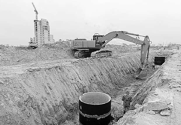 Спецтехника подрядной организации «Форттранс» на площадке будущего кампуса роет траншеи для прокладки водопроводных труб. «Морозы не помеха для подземных работ»,…