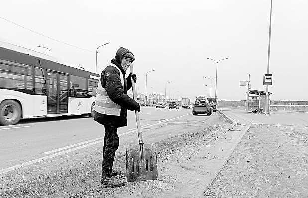 Грязь, развезенная колесами по асфальту, а на обочинах лед. Это фронт работ для сотрудников ДРСУ-1. Возле остановки на улице Мельникайте…