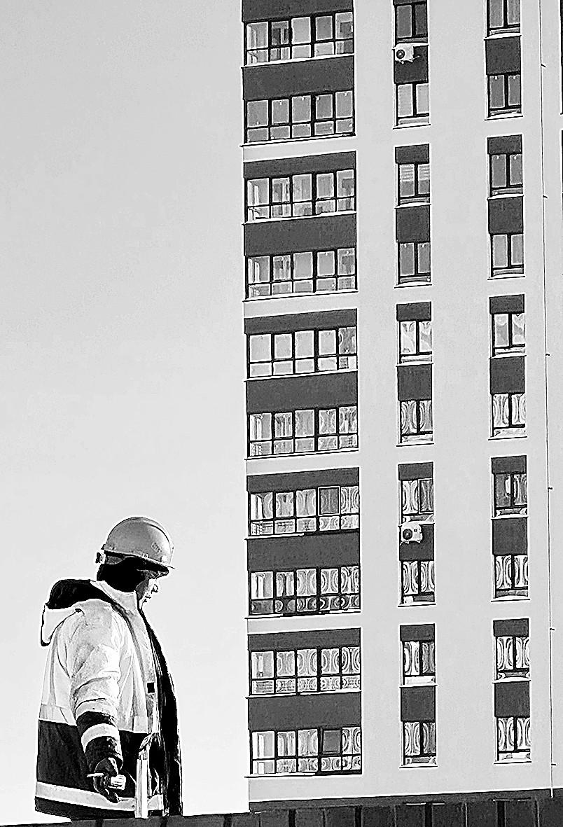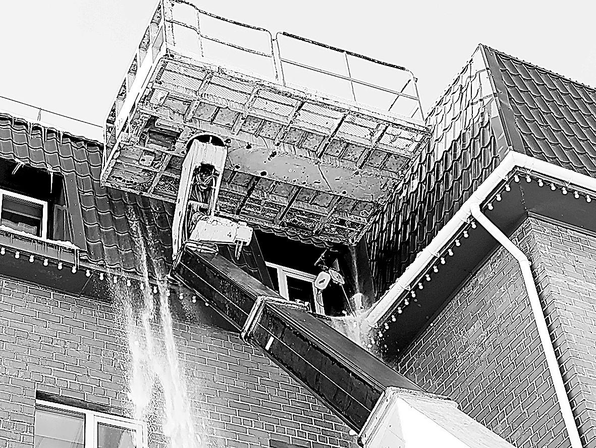 На крыше рынка «Северный» вчера работали сотрудники компании «Альпион». В автолюльке орудует киркой Александр. «Снега много?» — интересуюсь для затравки….
