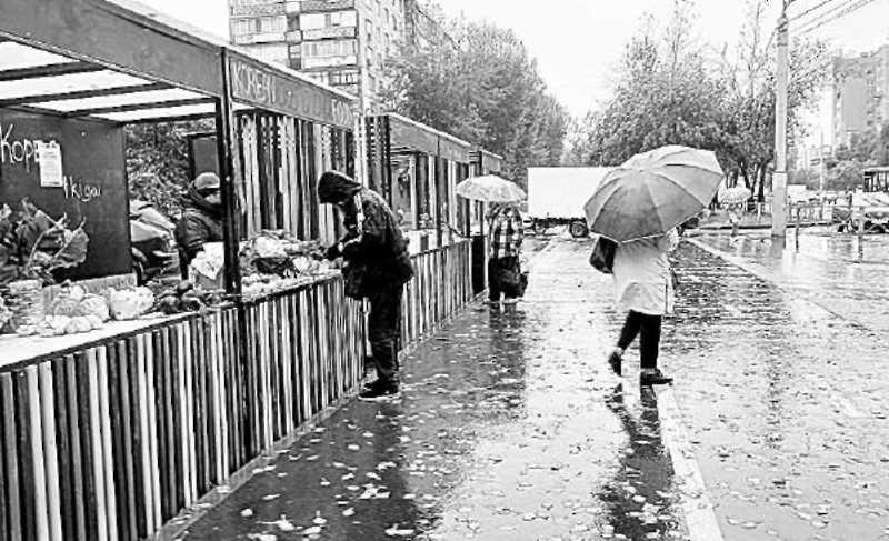 …Я приехала во вторник в дождь, и большая часть из сорока торговых мест пустовала. Несмотря на это, ассортимент хороший: ведерки лисичек, ведра яблок, тыква, картошка, хрен.